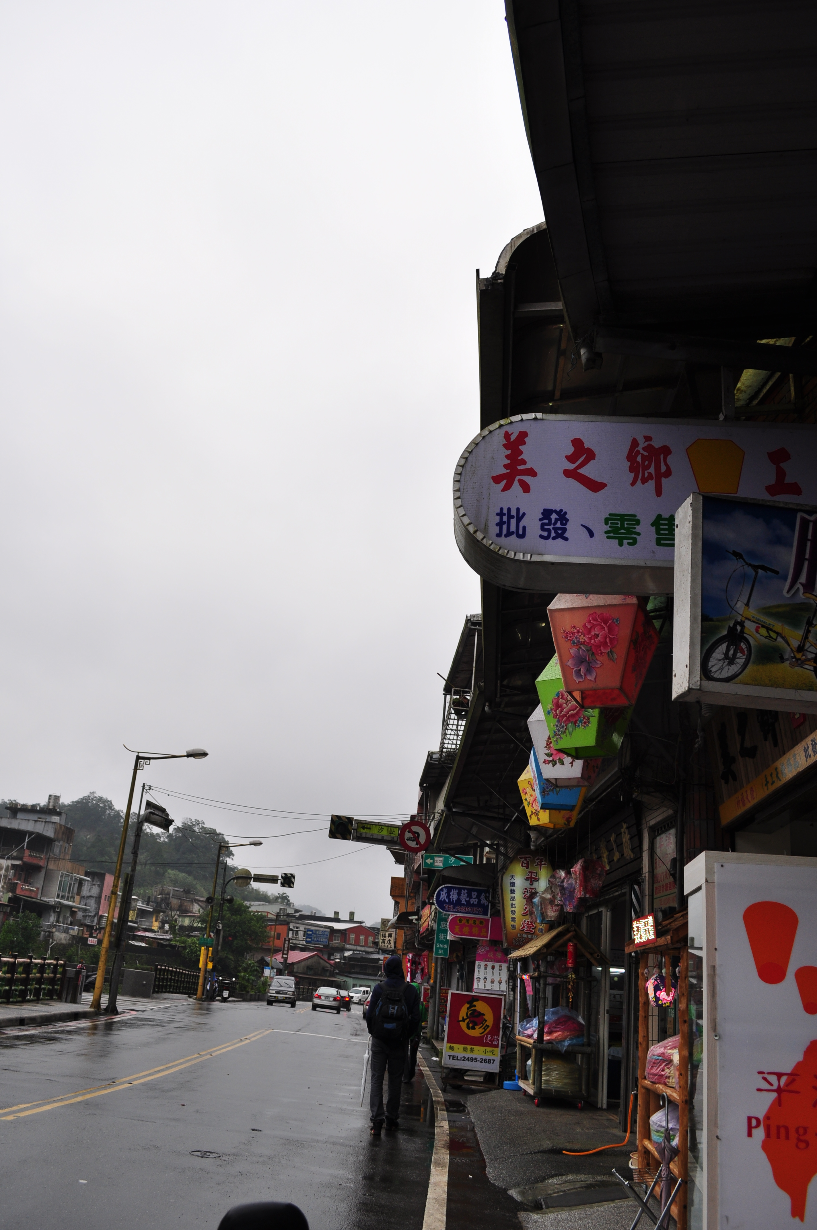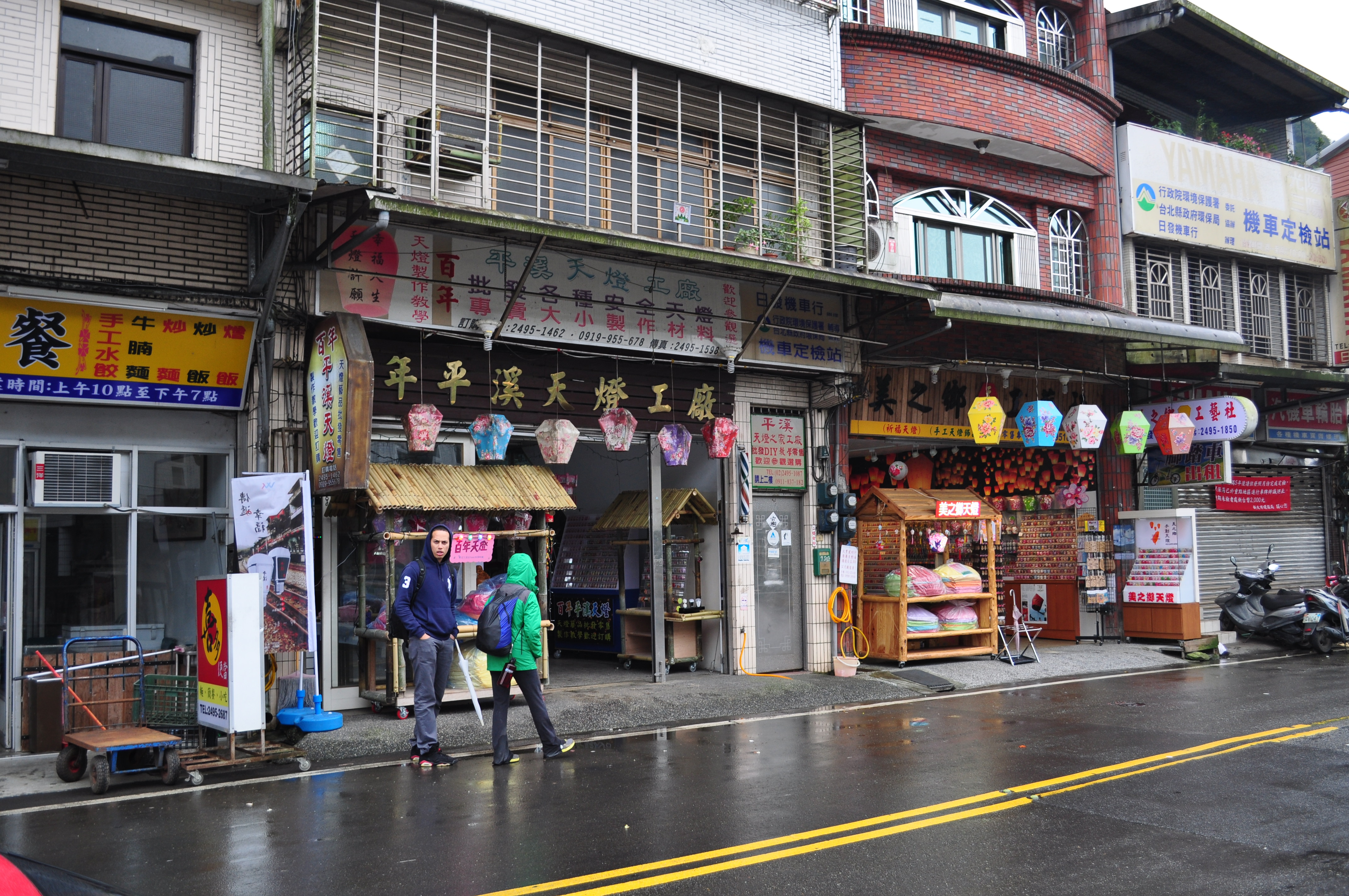 We heard about some great hiking trails in Ruifang, but since it was raining we figured they would be quite slippery + dangerous. Instead, we got a quick bite to eat. (What else is new, right?) It seems like every town in Taiwan is known for some special delicacy or another + we did not want to miss out on what Ruifeng might have to offer! We tried these insanely good sausage casings stuffed with chewy rice + chicken (+ probably pork because The Swine is in EVERYTHING) + some taro ball soup. Then it was on to Pingxi!