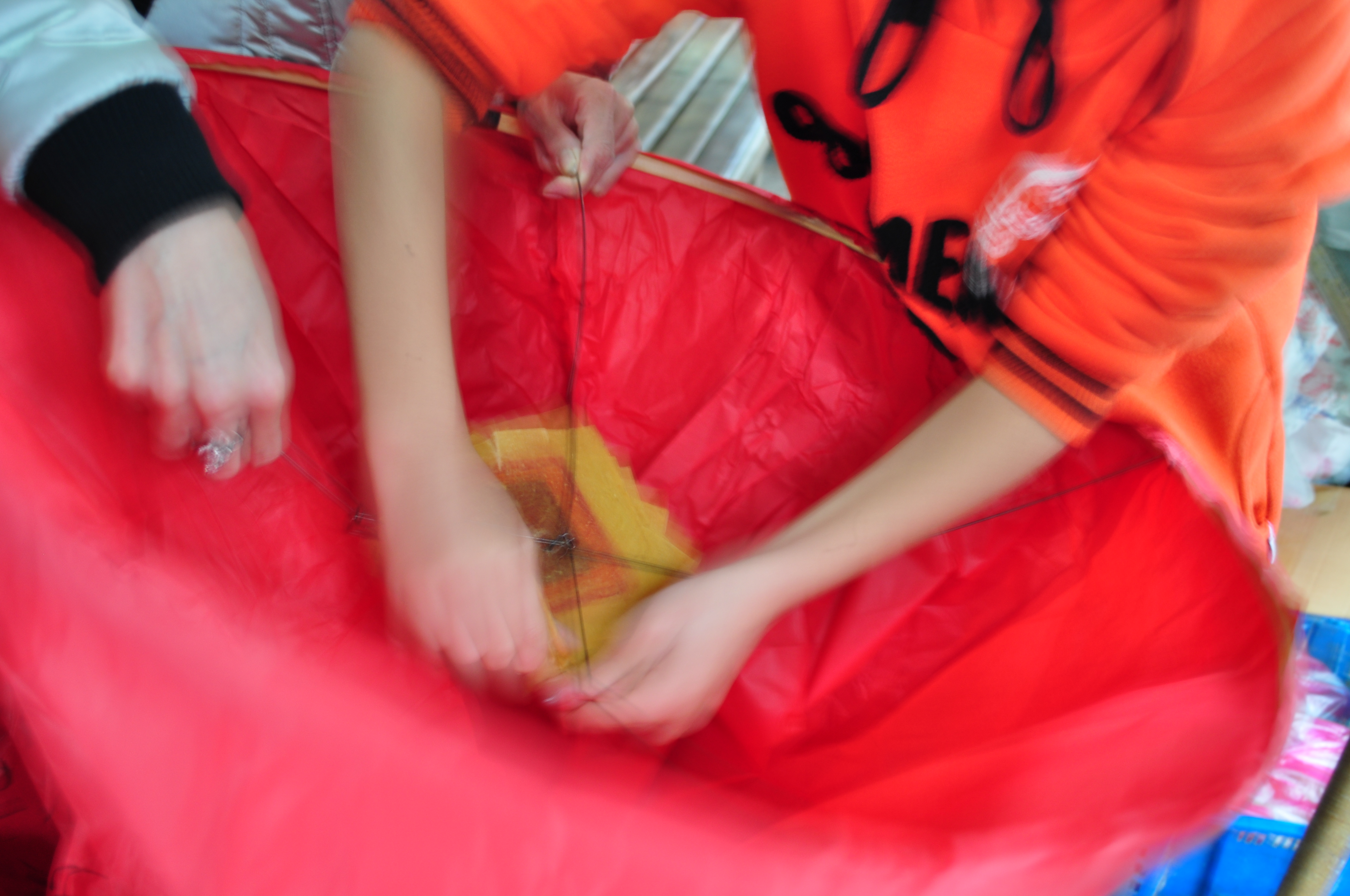 The son of the woman who sold us our lantern attached the spirit money to the wire frame at the bottom of the lantern.