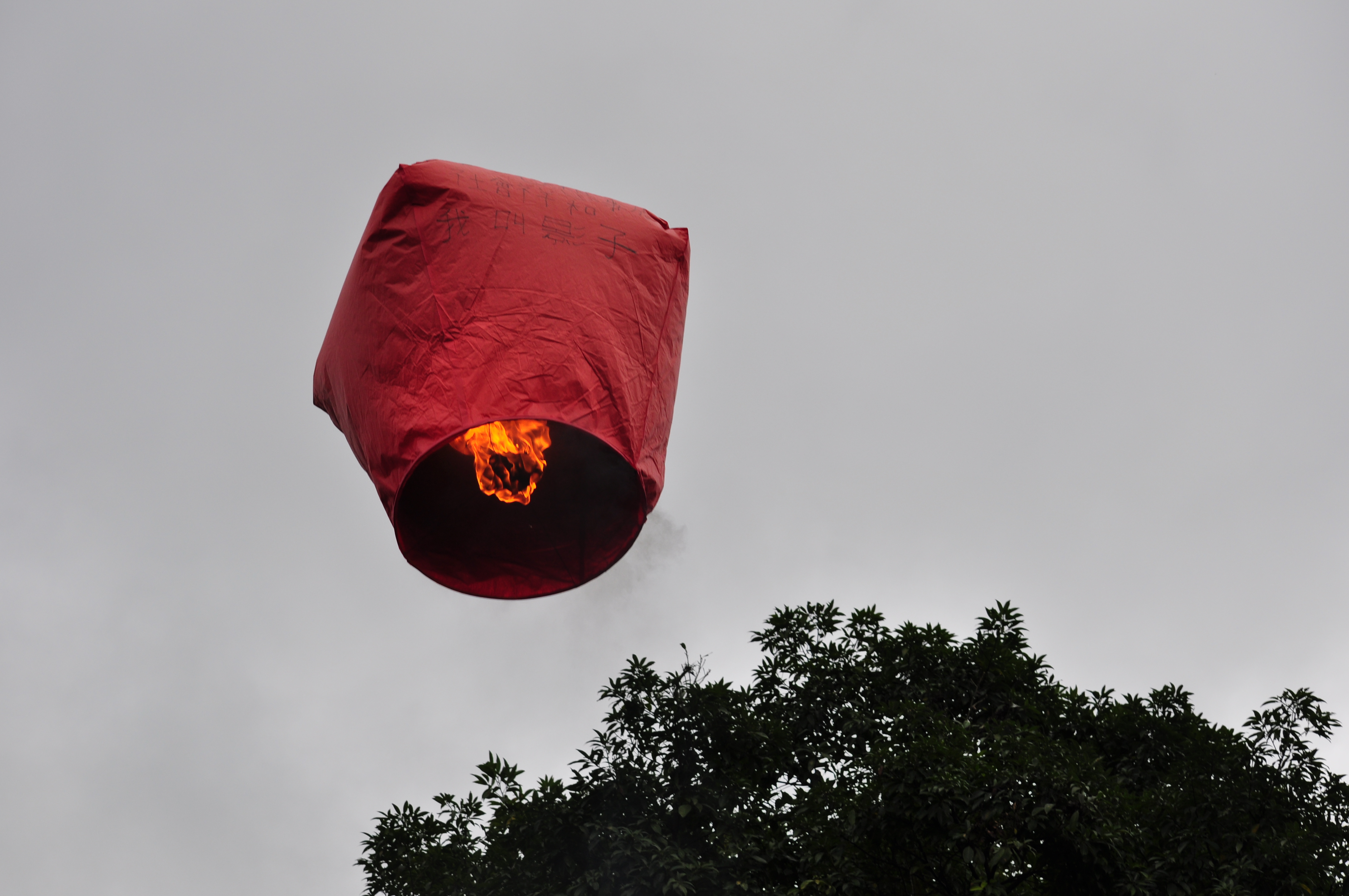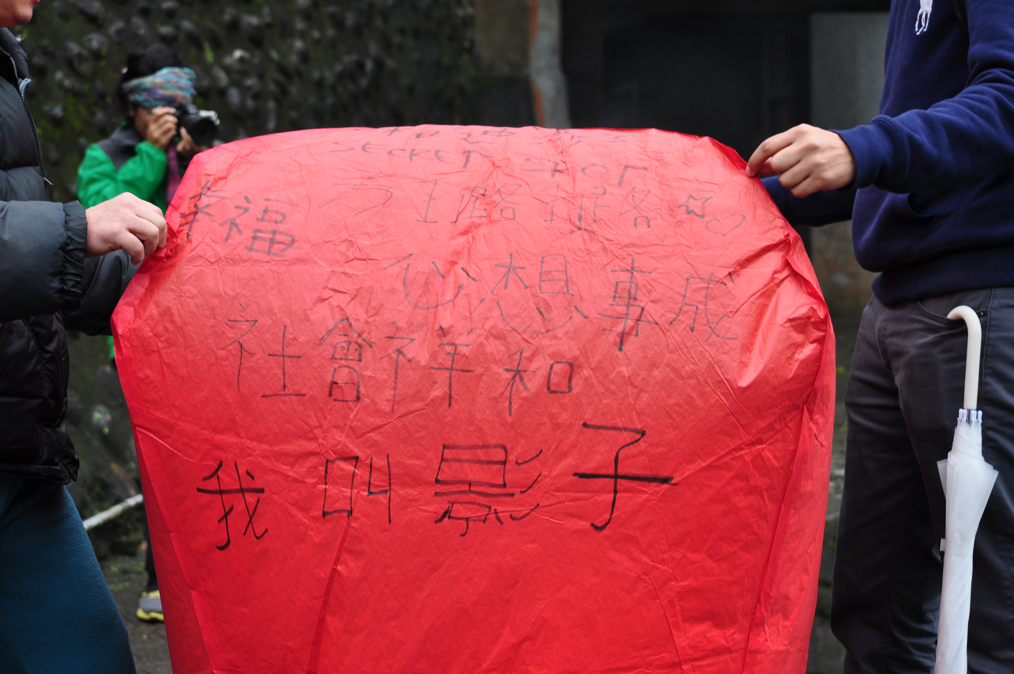 Pingxi is best known for its yearly Lantern Festival, which always occurs around Chinese New Year. Traditionally, people buy large paper balloons that they write wishes on. The balloons fill with hot air from a burning candle, burning spirit money, +c., + are released into the air!