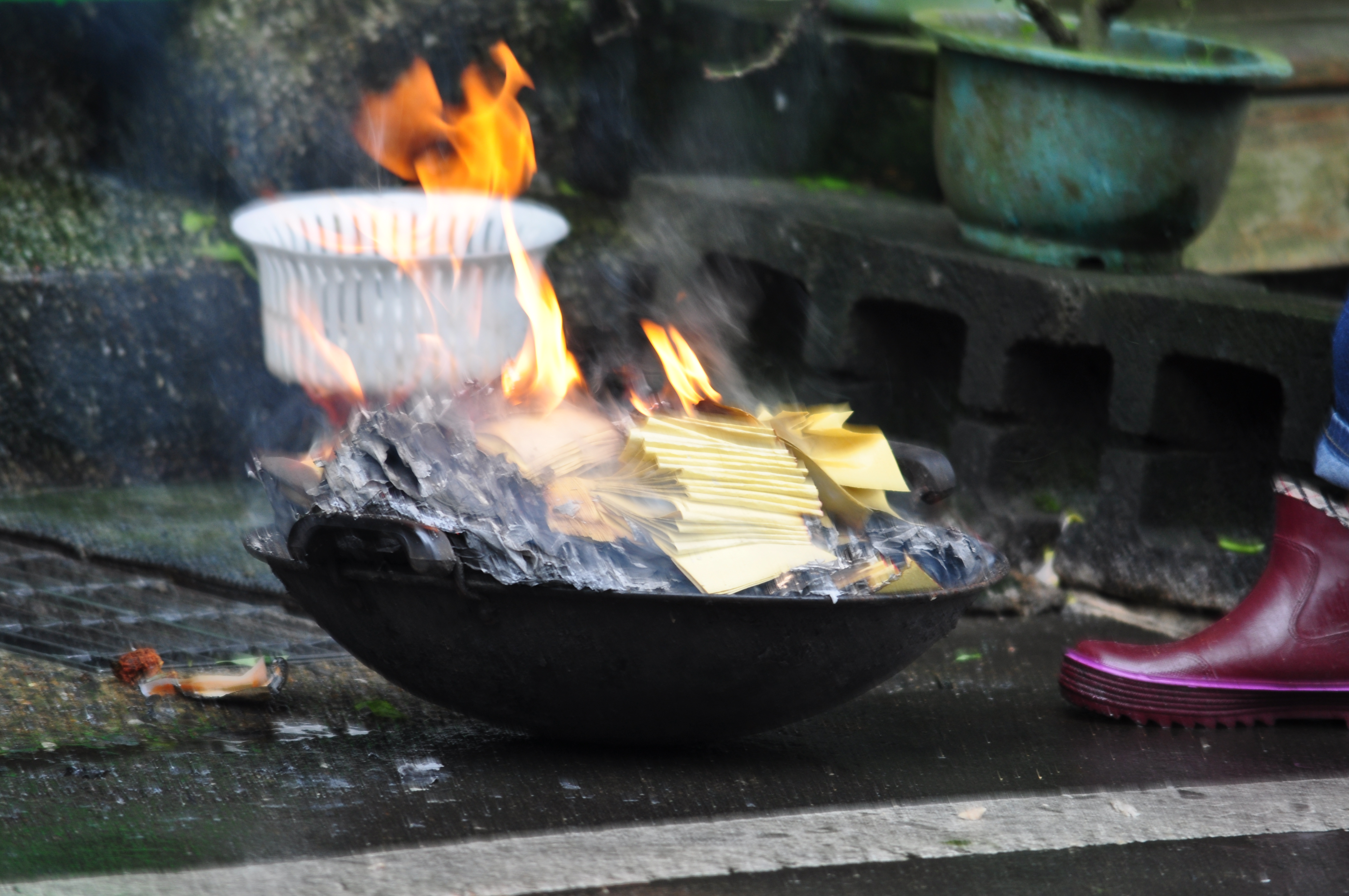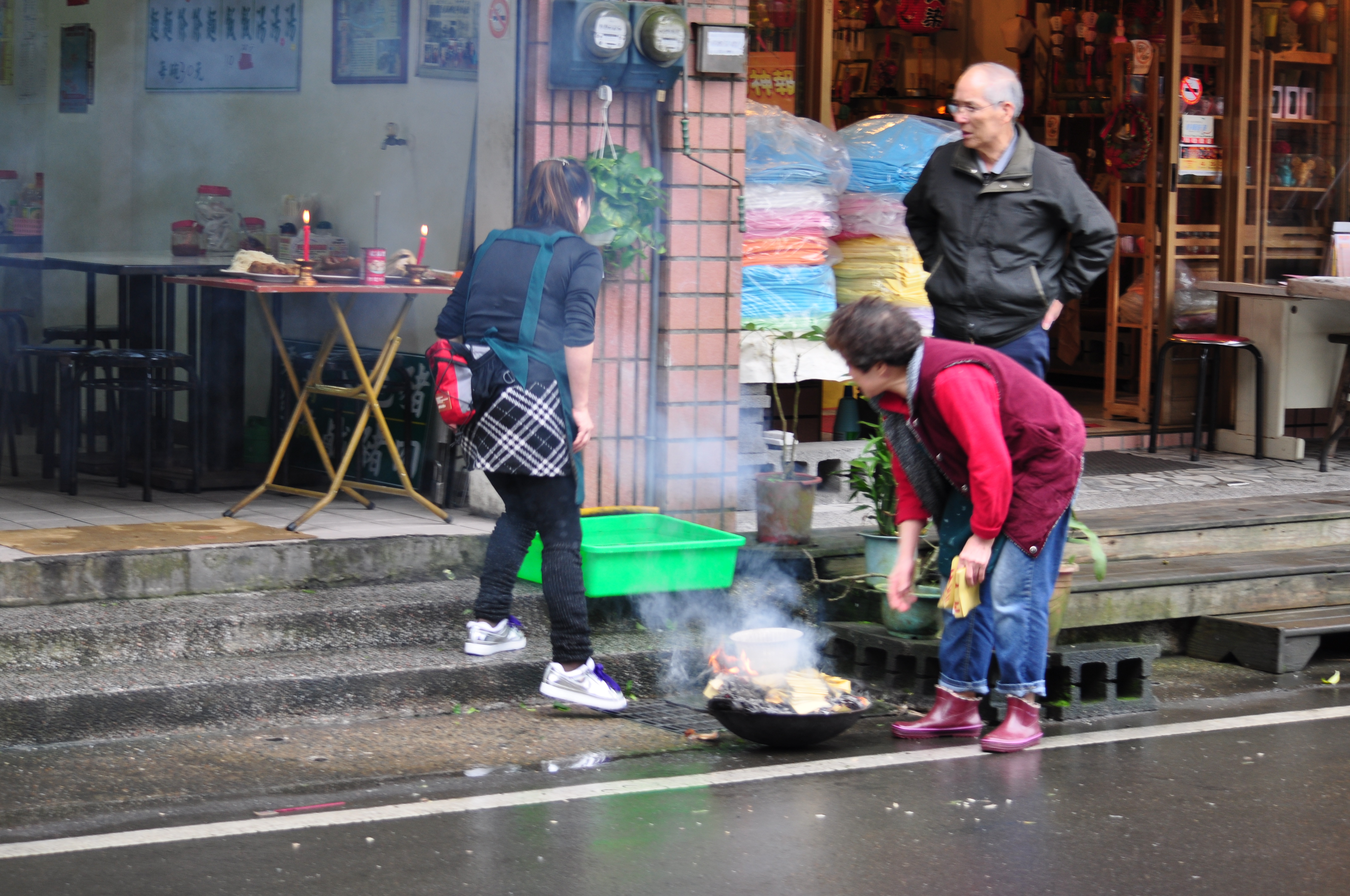 I have seen at least 50 such burnings since I arrived in Taiwan! The first time I saw it happening in Taipei, I thought the shop was burning its receipts…Boy, was I off! (I actually feel like an idiot about that because I had read all about ghost ceremonies before getting to Taiwan.)