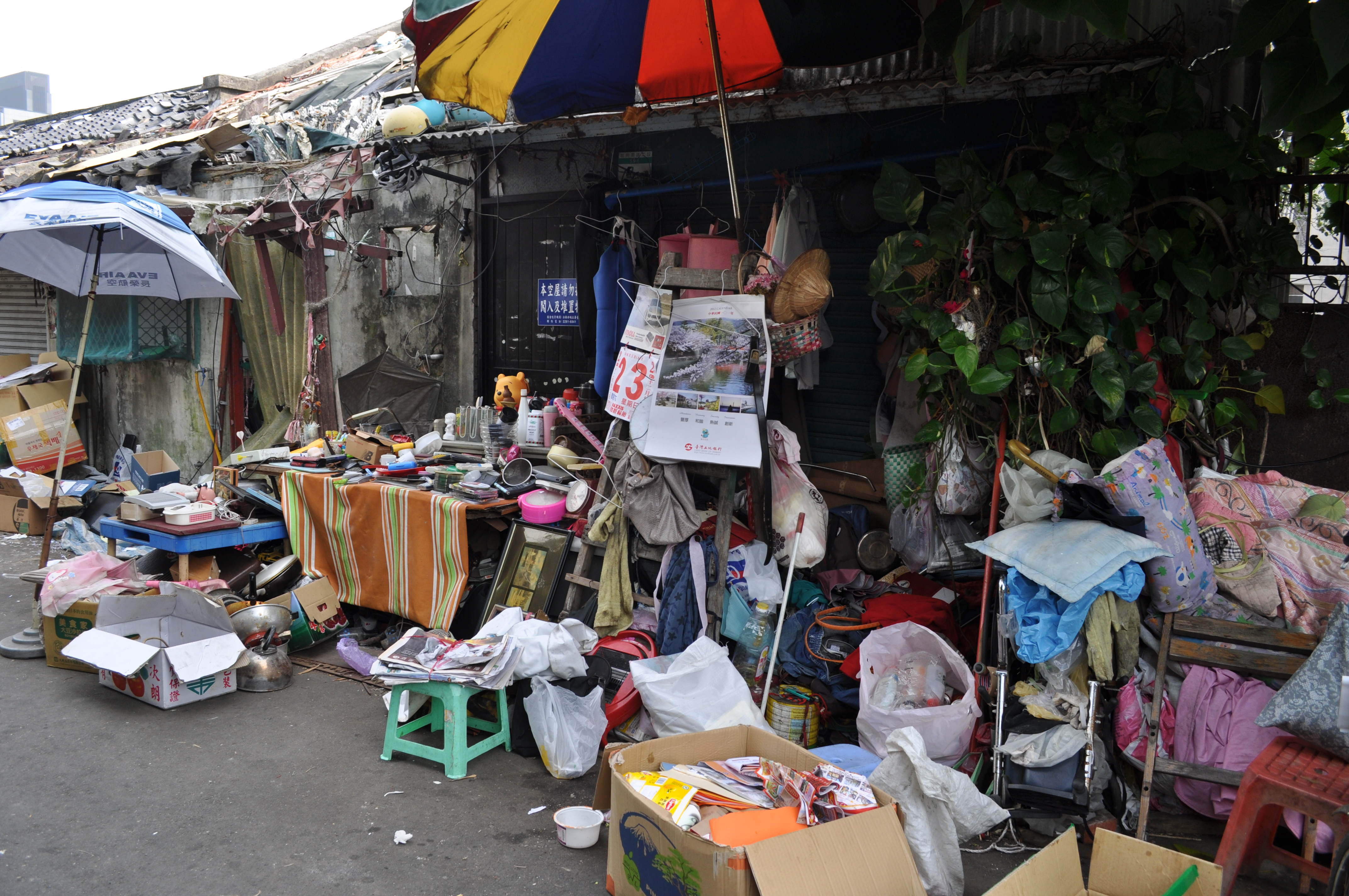 Basically, the Huaguang community is on prime real estate. It is located directly across from the Chiang Kai Shek Memorial. It is quite run down + spans a few city blocks. All of the homes are small, one story units. They are clustered in an area that used to be the military training grounds + homes for the Japanese during Japan’s colonization of Taiwan. Most of the homes have already been evacuated.