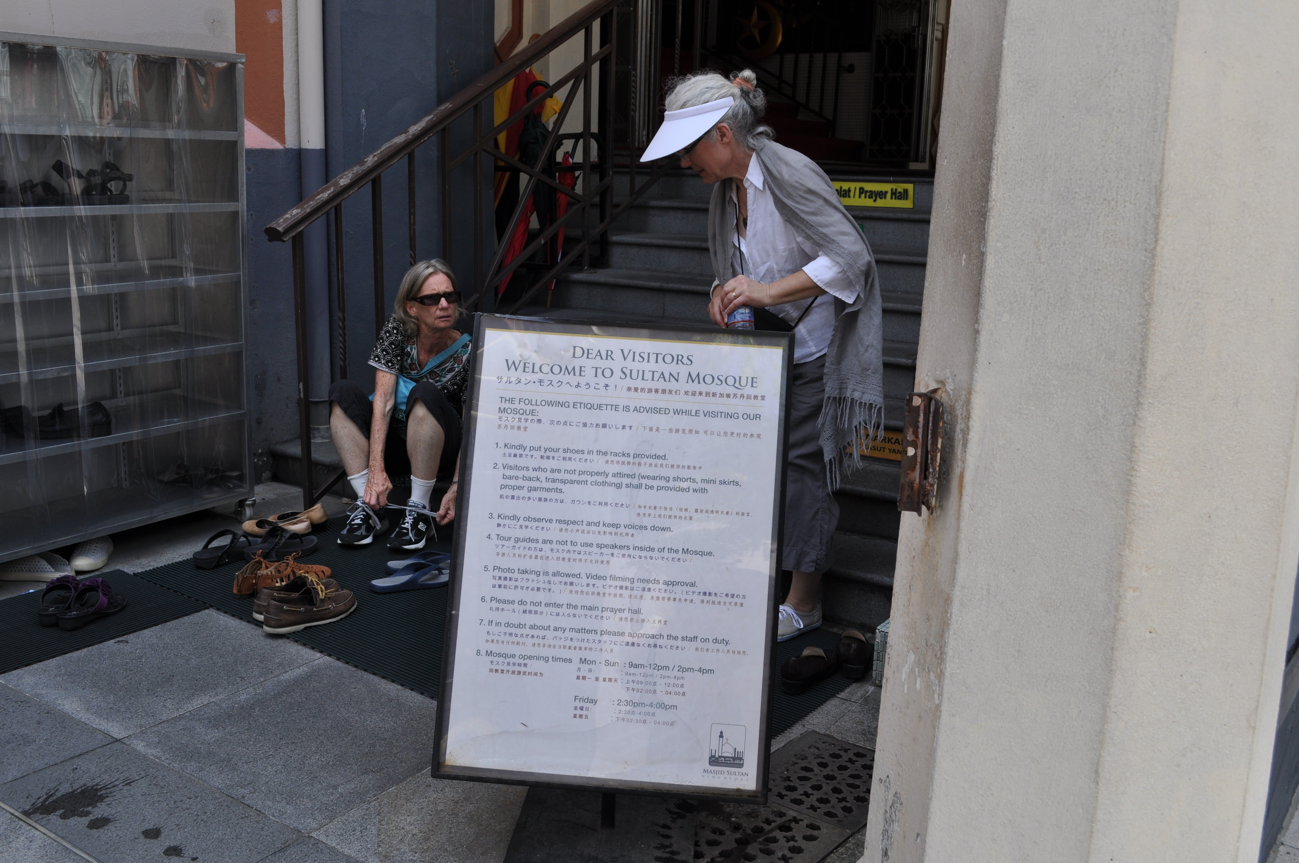 the ladies taking off ze shoes at masjid sultan mosque/arab quarter, singapore/march 2013