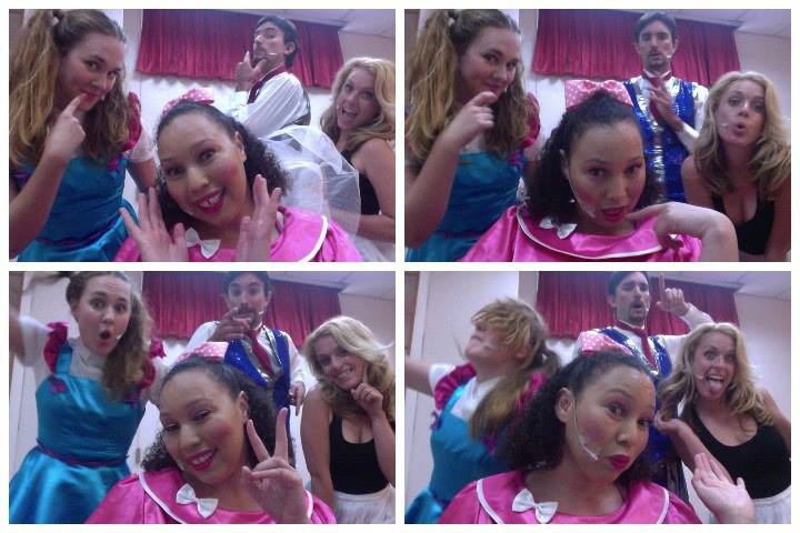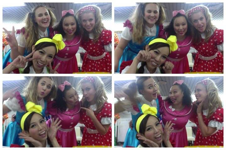 Amazingly none of the children in the audience seemed at all phased by it + almost immediately it was on with the show. No wonder I was woozy after the performance. We performed right through any aftershocks that there might have been! (The pics of us cheesin’ below were taken in our dressing room minutes before the quake.)