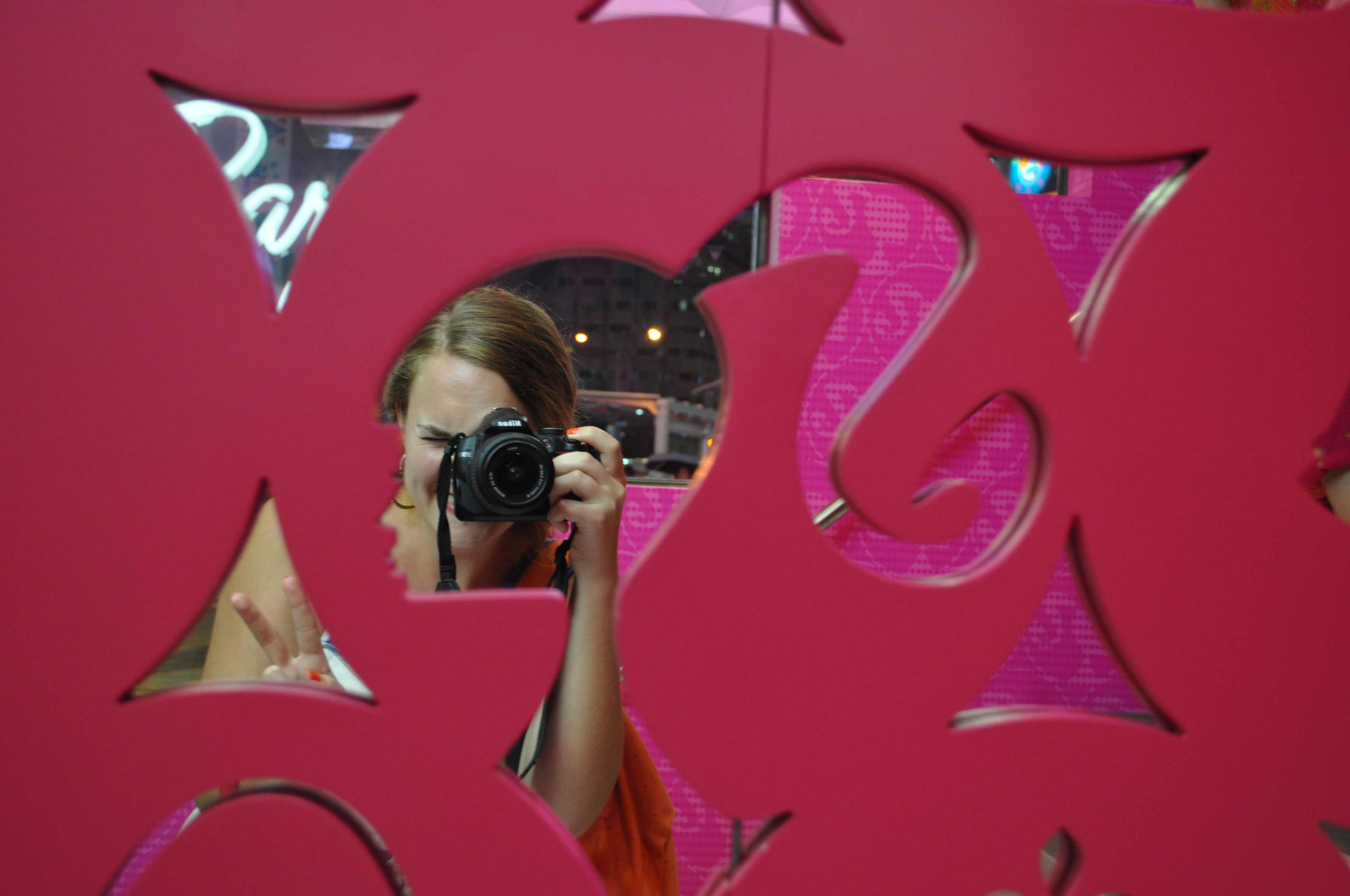 Once up the fluorescent staircase lined with pink Barbie silhouette mirrors, it was like I had died + gone to Barbie heaven.